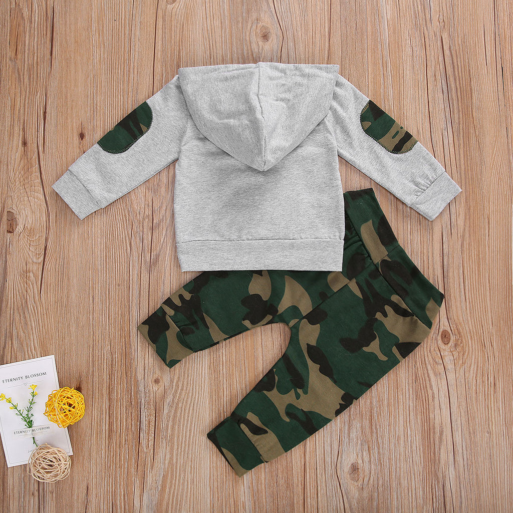 Grey Camo baby & toddler hoodie and track-pants set with breathable cotton perfect for your little one. With easy to wear stretch waist for comfortable wearing.