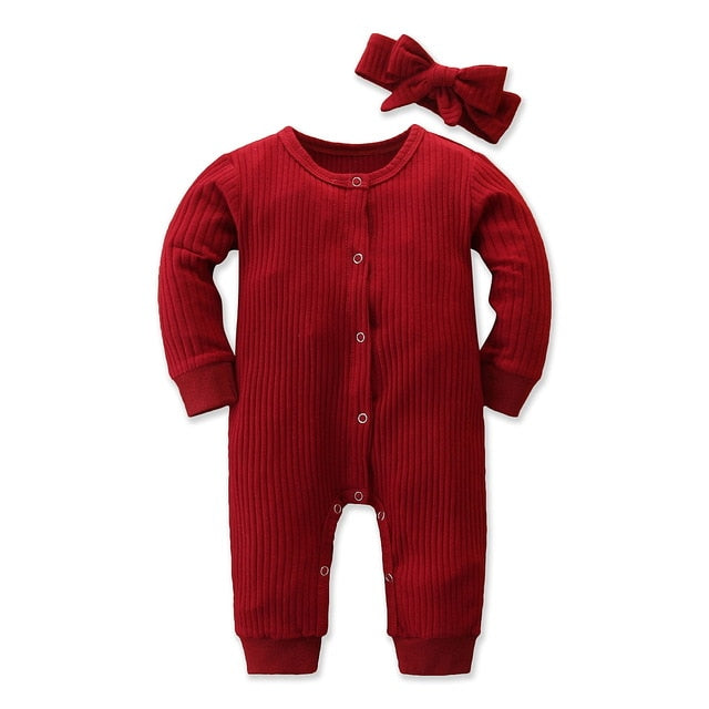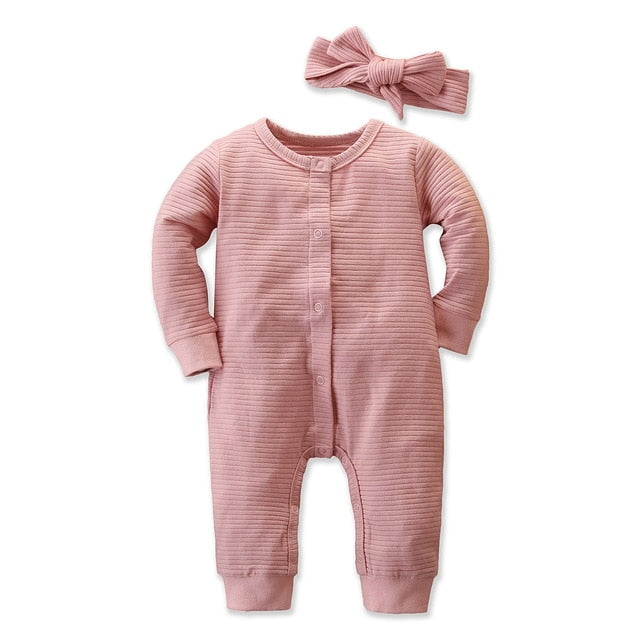 Long sleeve baby jumpsuit & bow set, with ribbed cotton perfect for your little one through the colder weather.