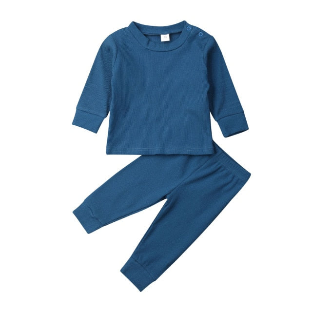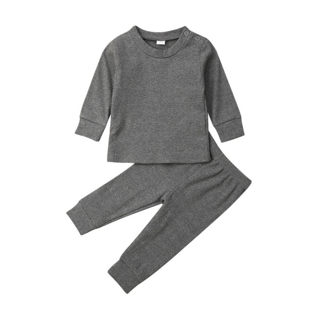 Casual baby & toddler long sleeve top and track-pants set with breathable cotton perfect for your little one. With easy to wear stretch waist for comfortable wearing.