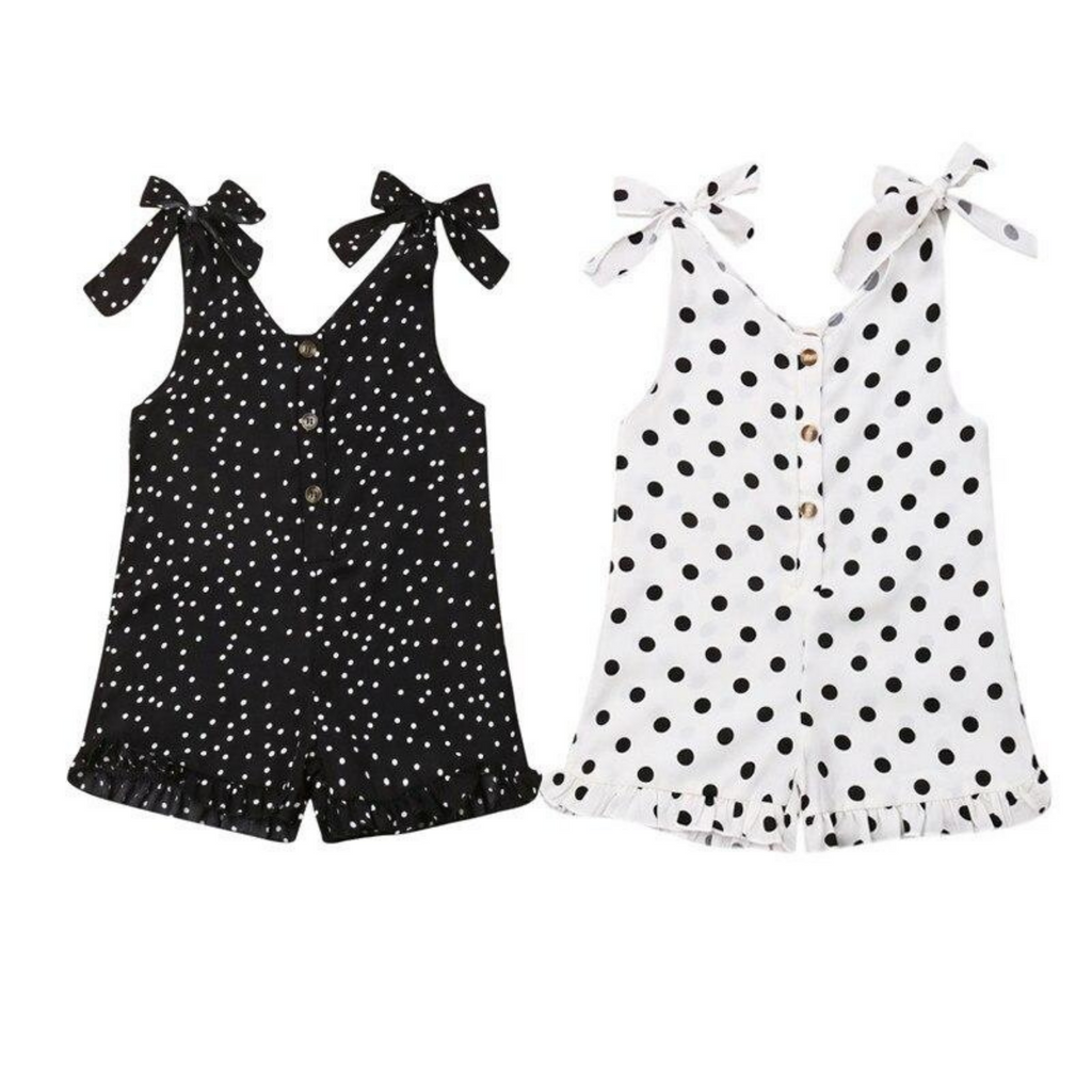 Summer polka dot overalls with comfortable, breathable cotton perfect for your little one. If you're looking for a baggier look, perhaps purchase the next size up.