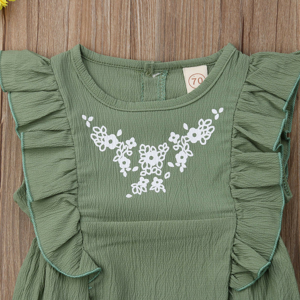 Summer floral ruffle romper, with easy to use clasp buttons. It's a must have little summer outfit.