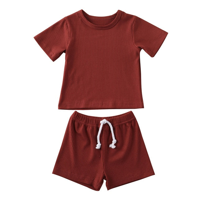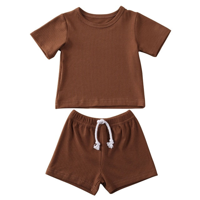 Summer baby & toddler t-shirt and short set with breathable ribbed cotton perfect for your little one. With easy to wear stretch waist for comfortable wearing. Material: Ribbed Cotton Care Instructions: Gentle...
