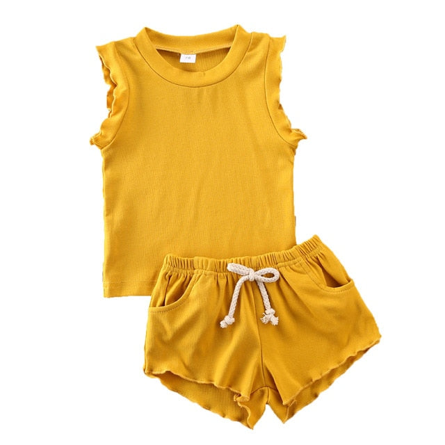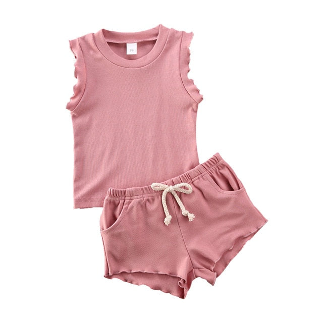 Summer baby & toddler sleeveless top and short set with breathable ribbed cotton perfect for your little one. With easy to wear stretch waist for comfortable wearing.