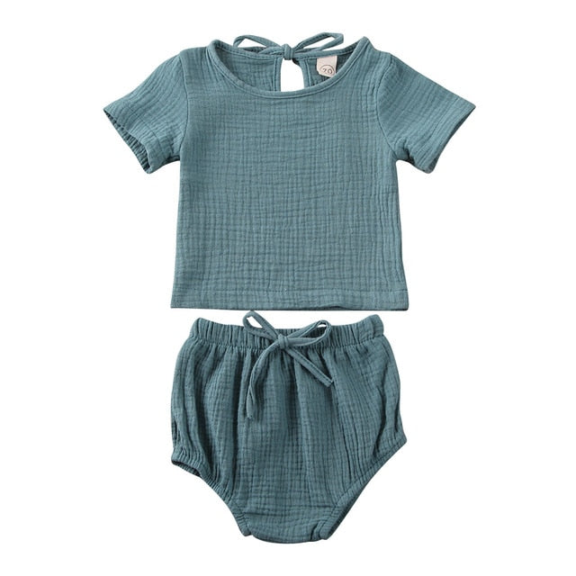 Summer baby shirt and short set with breathable ribbed cotton perfect for your little one. With easy to wear stretch waist for comfortable wearing. We are living for these pastels. Material:...