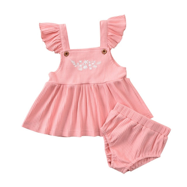 Singlet onesie & bloomer shorts set with breathable cotton perfect for your little one. With easy to use clasp buttons for a quick outfit change! Material: Cotton Care Instructions: Gentle...