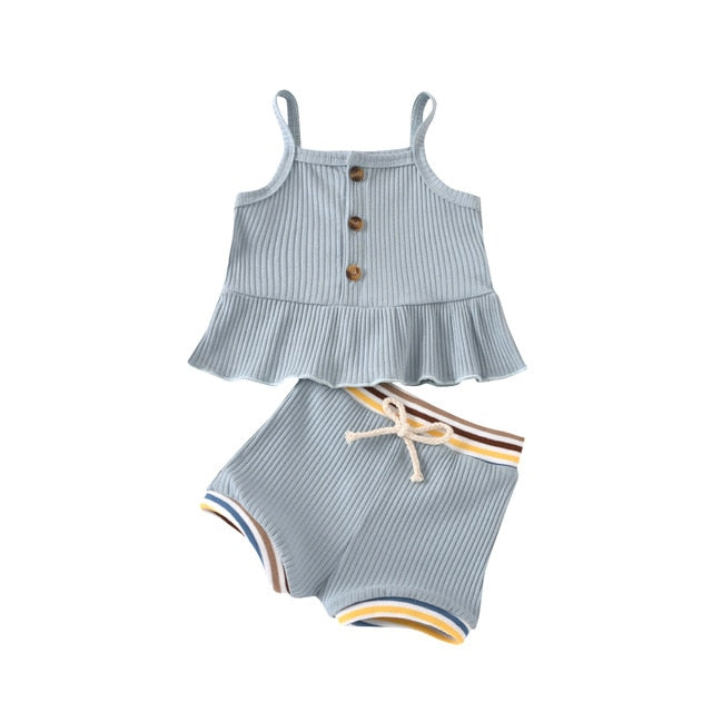 Summer baby & toddler singlet top and bloomer short set with breathable ribbed cotton perfect for your little one. With easy to wear stretch waist for comfortable wearing.