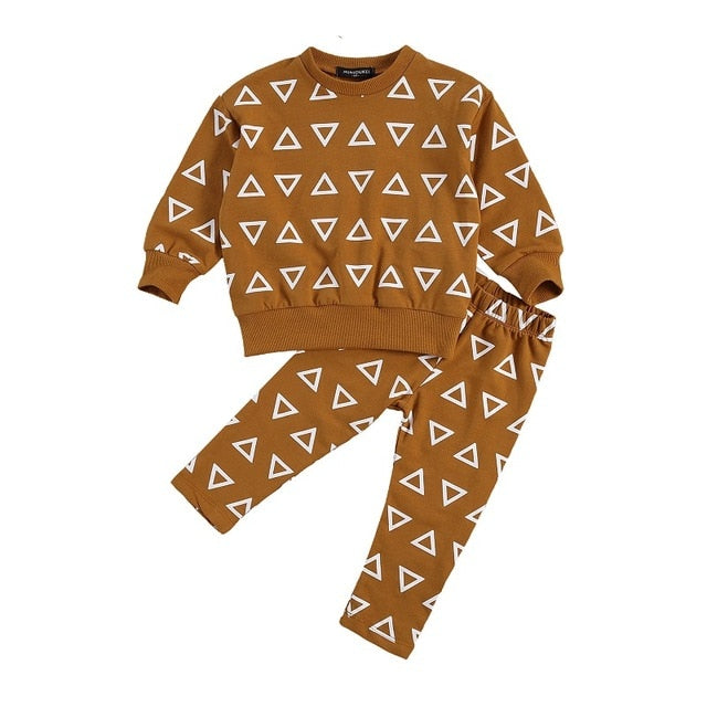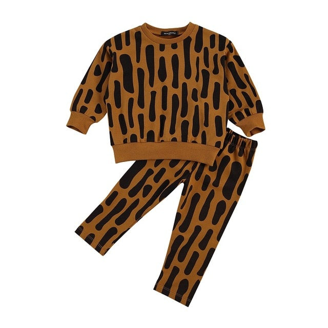 Patterned toddler long sleeve top and track-pants set with breathable cotton perfect for your little one. With easy to wear stretch waist for comfortable wearing.
