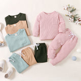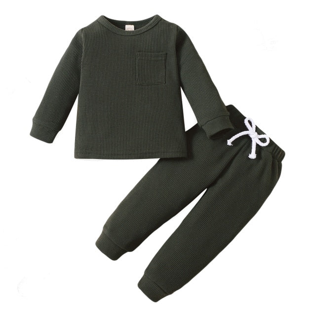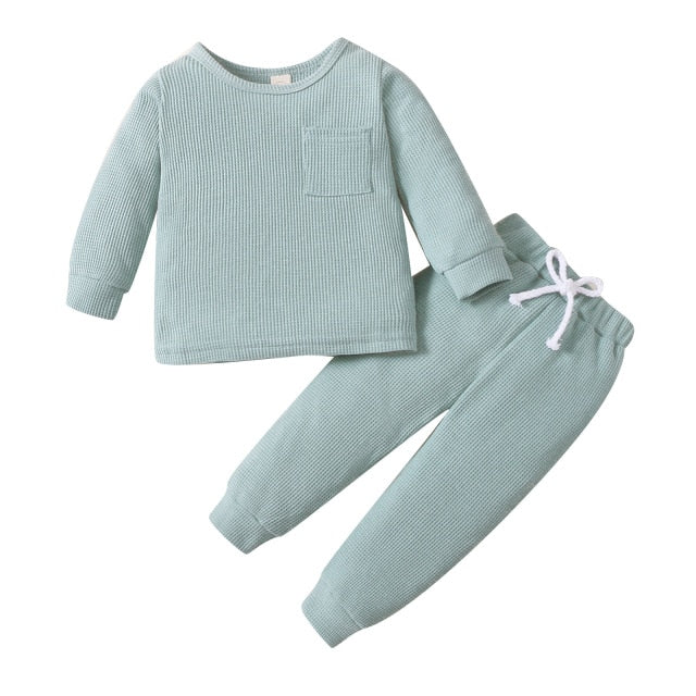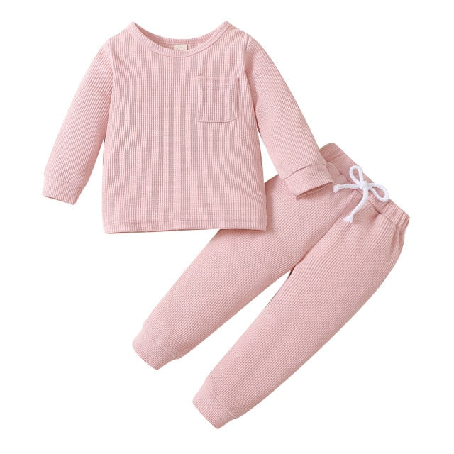 Pastel baby & toddler long sleeve top and track-pants set with breathable cotton perfect for your little one. With easy to wear stretch waist for comfortable wearing.