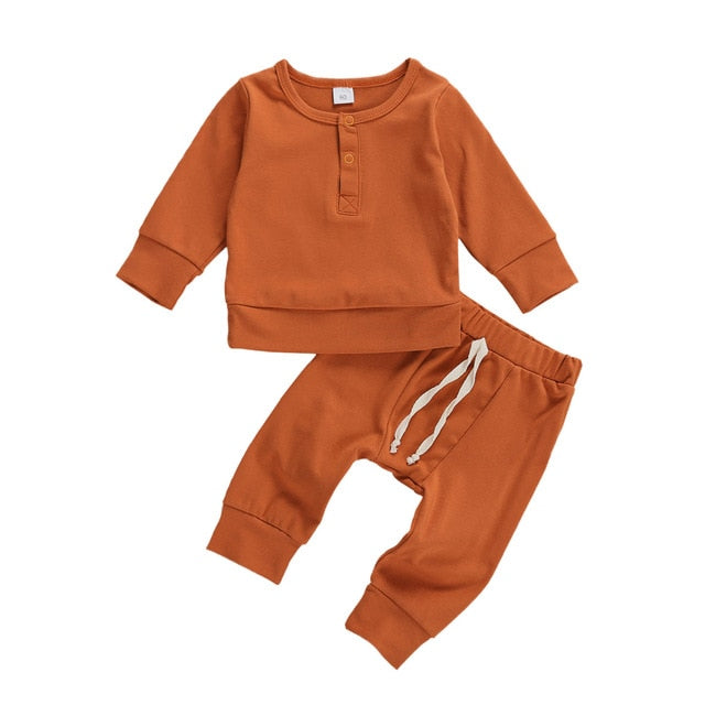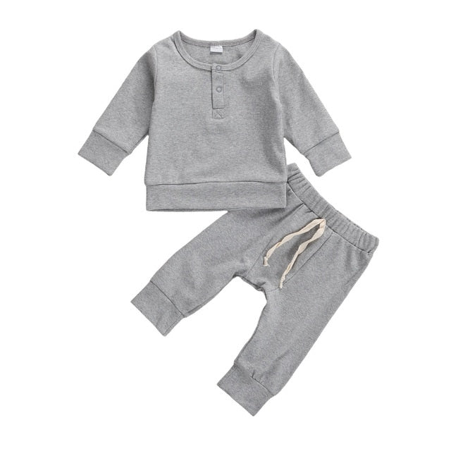 Baby & toddler long sleeve top and track-pants set with breathable cotton perfect for your little one. With easy to wear stretch waist for comfortable wearing.