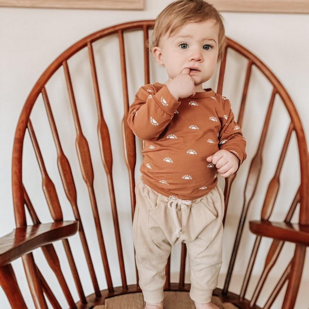 Sol baby & toddler long sleeve top and track-pants set with breathable cotton perfect for your little one. With easy to wear stretch waist for comfortable wearing.
