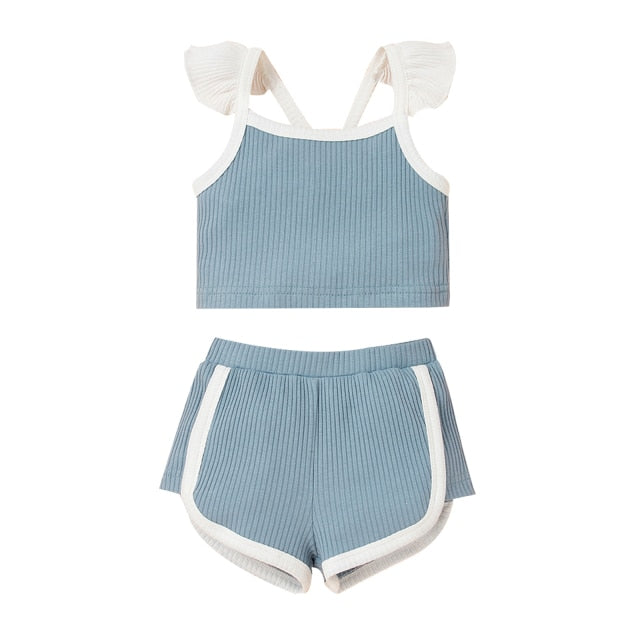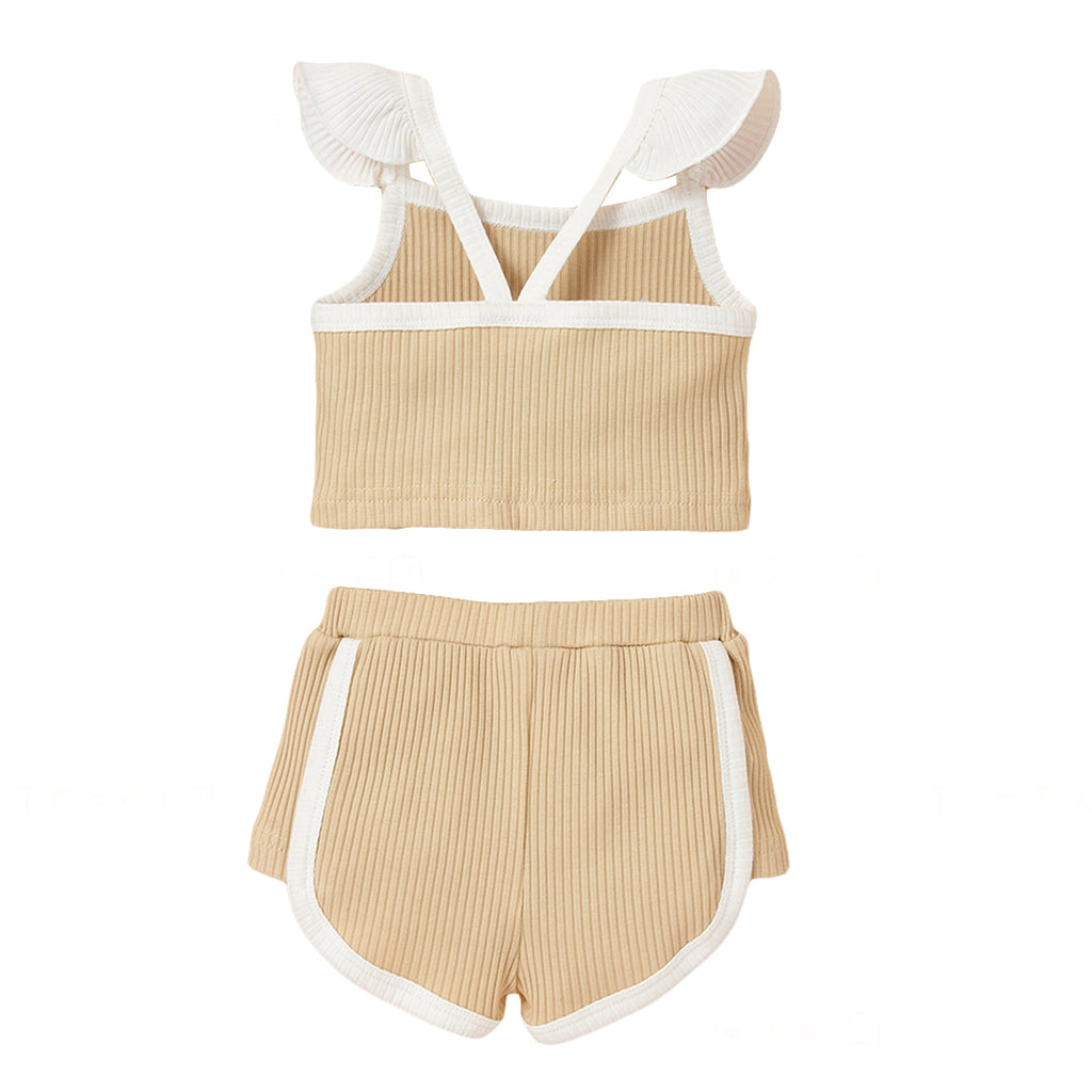 2-Piece ruffled singlet & short set with breathable cotton perfect for your little one. With easy to wear stretch waist for a comfortable wear.