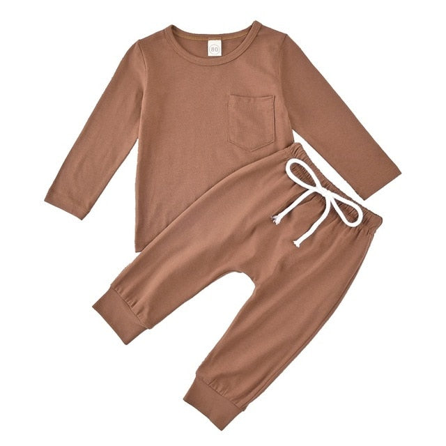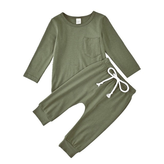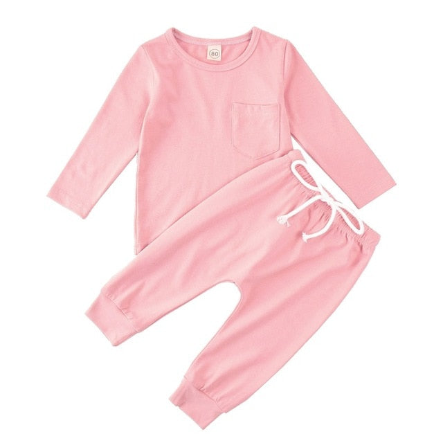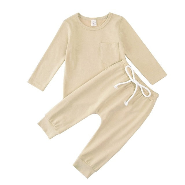Baby & toddler long sleeve top and track-pants set with breathable cotton perfect for your little one. With easy to wear stretch waist for comfortable wearing.