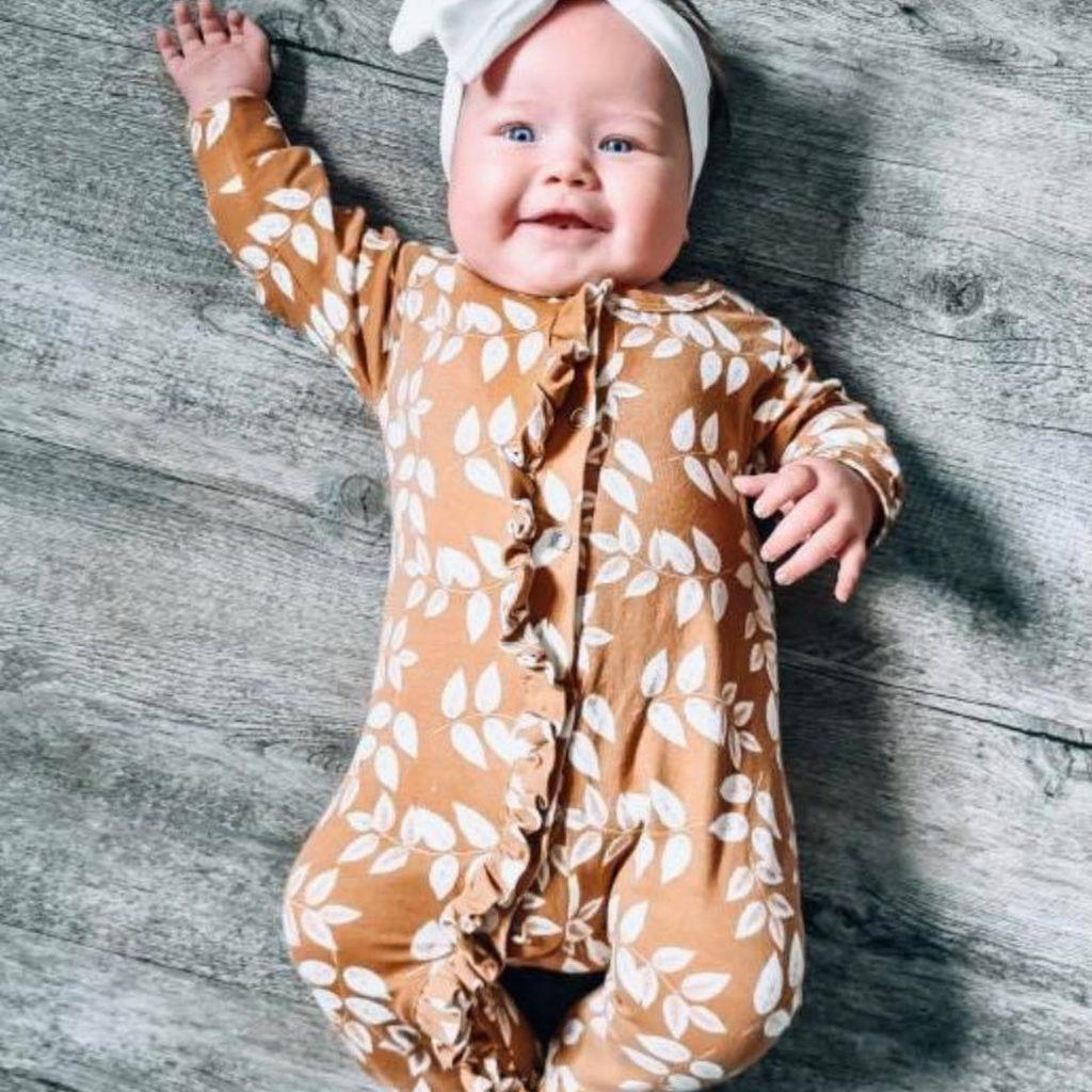 Long sleeve baby romper & bow set with soft, cotton and perfect for your little one through the colder weather.